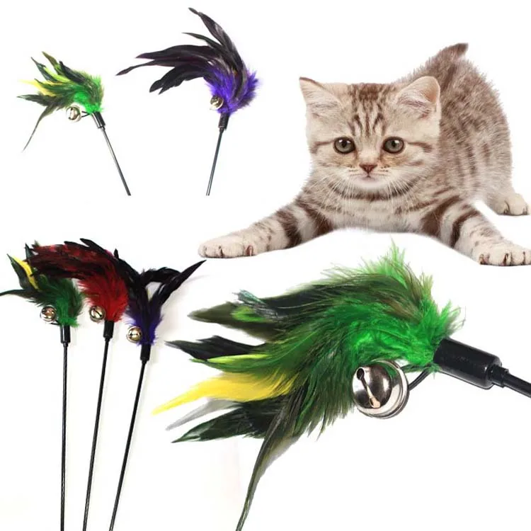 Горячая Распродажа, игрушки для кошек, случайный цвет, сделай палку для кошки, перо, черный полюс, как птицы с маленьким колокольчиком, натуральный, 1 шт.