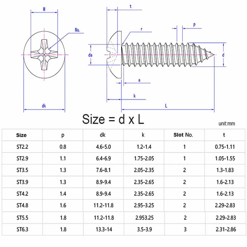 Размер: M2.2/M2.9/M3.5/M4.2/M4.8/M5.5/M6.3