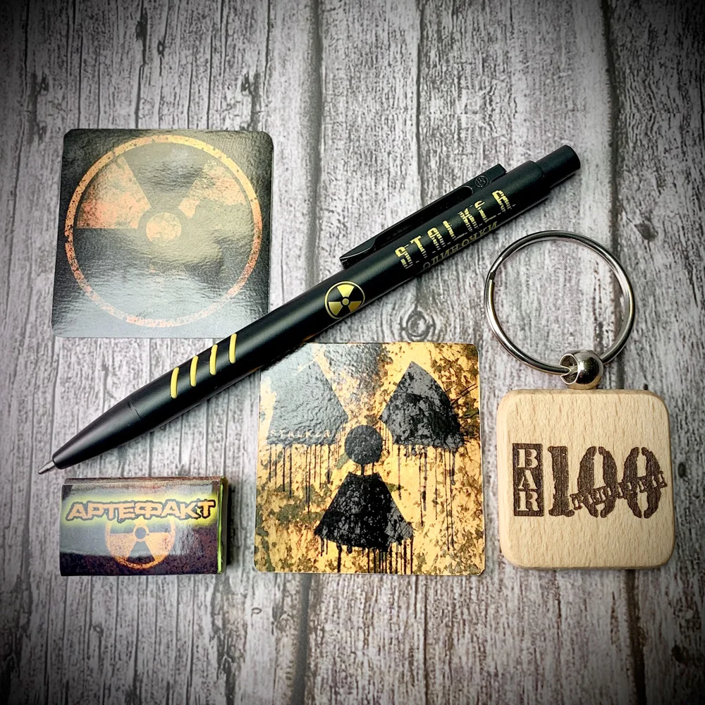 Набор: Алюминиевая шариковая ручка с цветной лазерной гравировкой + деревянный брелок + виниловые наклейки + жевательная резинка