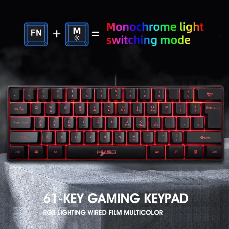 K100 Механическая игровая клавиатура черный переключатель 61 клавиша Проводная клавиатура для ПК Игр эргономичный крутой светодиодный дизайн с подсветкой