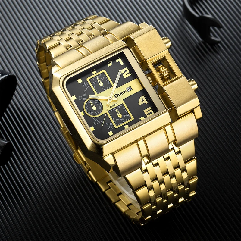 Золотые водонепроницаемые военные часы из нержавеющей стали