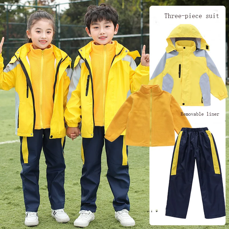 Униформа для детского сада на осень и зиму. Костюмы, спортивные костюмы для учителя, школьная форма для молодежи, Детская школьная форма из трех предметов и спортивные костюмы, водонепроницаемые, ветрозащитные. Теплая Флисовая Съемная удобная ткань Добро пожаловать на заказ