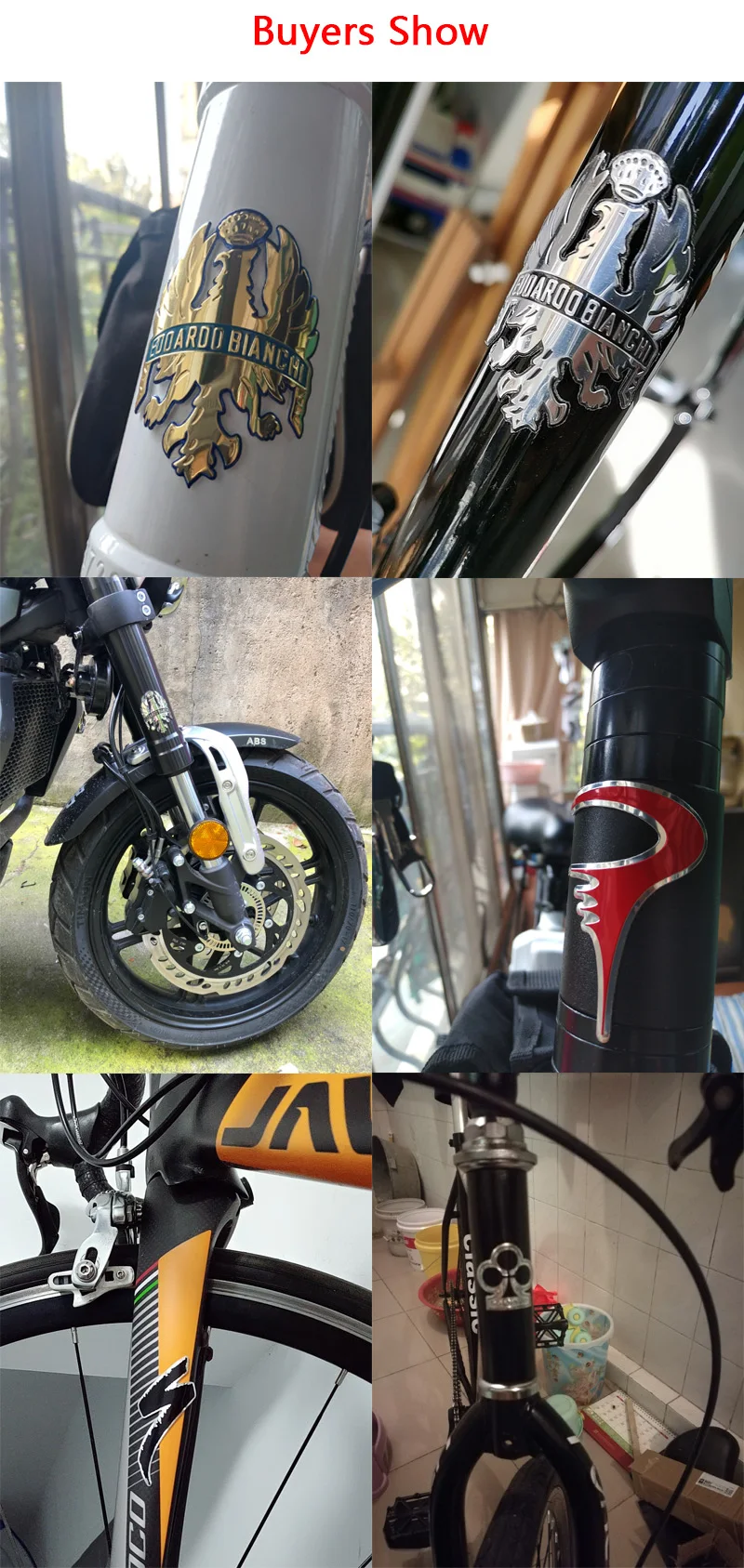 Очистите трубу вашего велосипеда, где вы хотите приклеить значок и отрегулировать радиан значка, пока он не будет идеально подходить, затем снимите наклейку клея и положите значок на трубку и нажмите на нее в течение нескольких секунд.