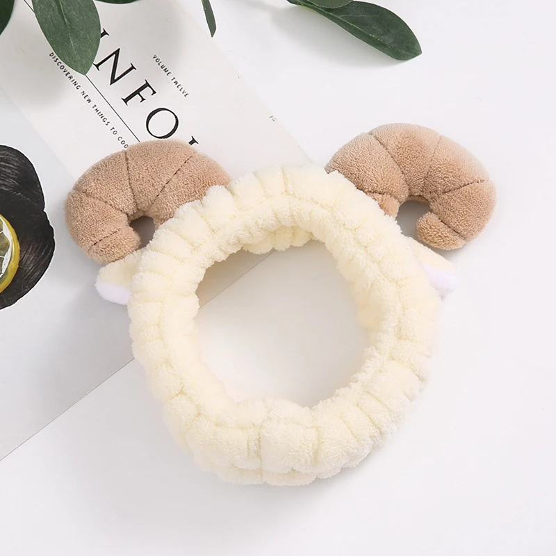 Детский головной убор из кораллового флиса с овечьим Рогом, моющаяся маска для макияжа, повязка на голову с героями мультфильмов, аксессуары для волос, милая Женская эластичная резинка для волос