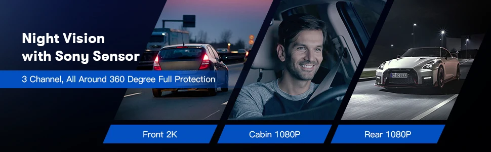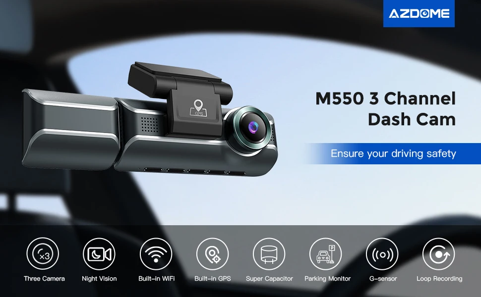 Drive safe with the new WiFi GPS-enabled AZDOME 3 channel dash cam front in-cab rear camera in your car!