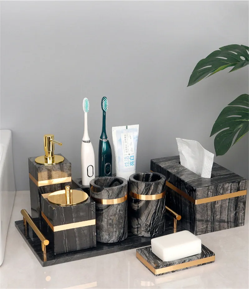 Мраморный комплект для ванной насос диспенсер для мыла блюдо пара чашек серый и золотой салфетки коробка свадебные подарки сантехника