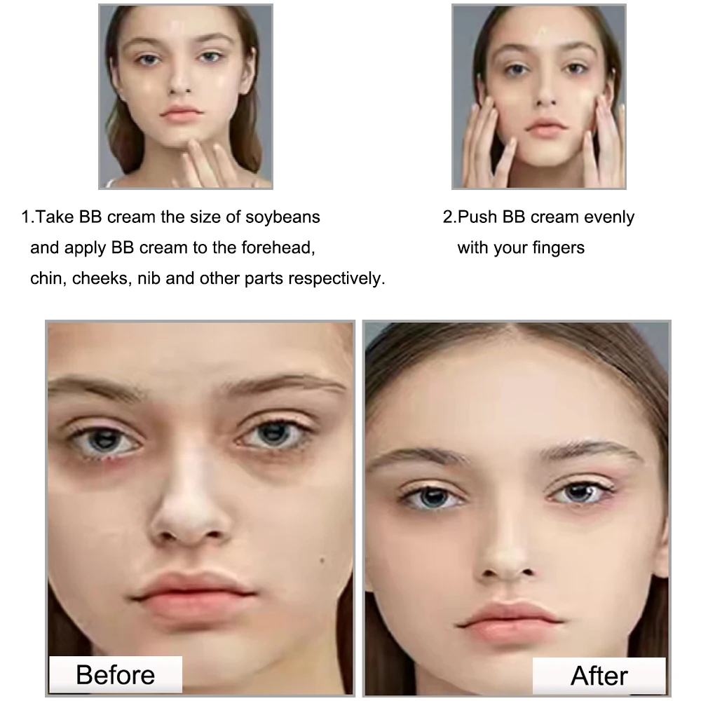 1 Возьмите BB крем размером с сою и нанесите BB крем на лоб, подбородок, щеки, наконечник и другие части соответственно.2. Нажмите BB крем равномерно пальцами.