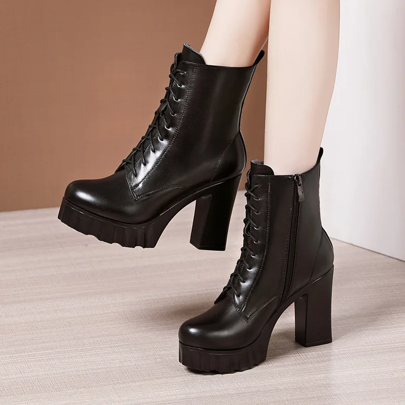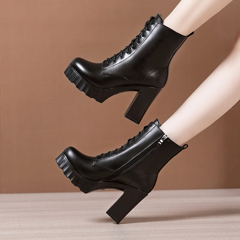 Ботинки Martin; Женская Осенняя обувь; Модные новые повседневные короткие сапоги для мотоцикла на шнуровке с круглым носком; Женская обувь на платформе в готическом стиле