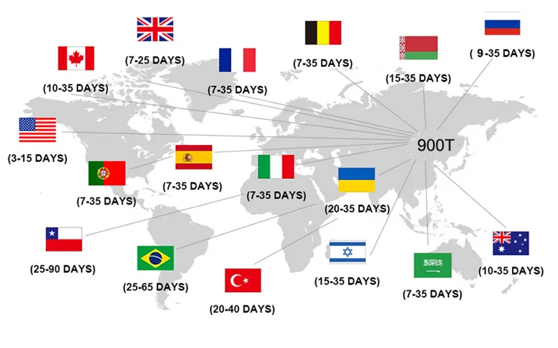 Ввиду расстояния и других факторов, доставка в разные страны занимает различное время.