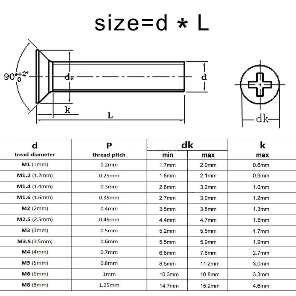 50 шт. высокое качество метрические резьбовые Phillips плоские потайные головки винт