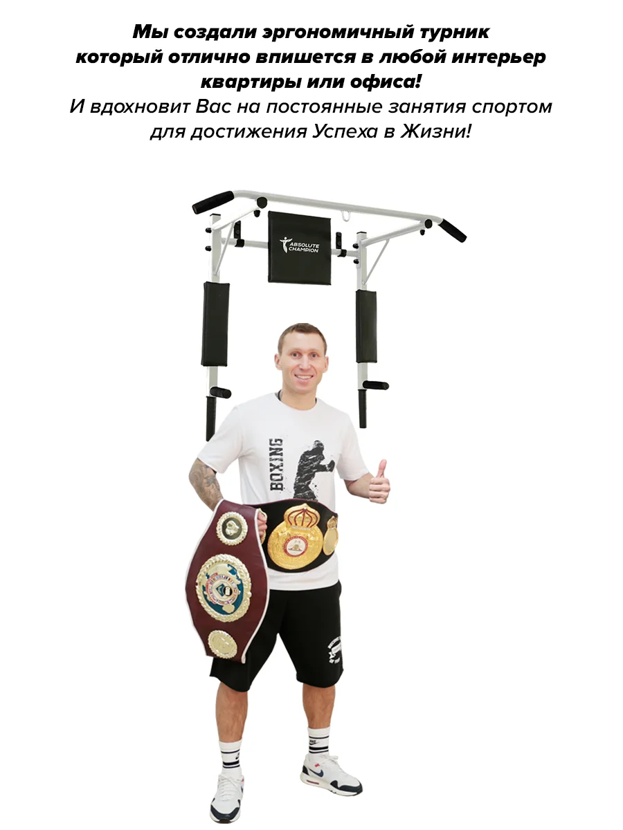 Покупайте настенные турники 3в1 от Absolute Champion и получайте тренажёр, заряженный энергией успеха Чемпионов Мира!