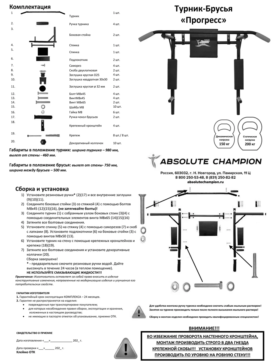 Все настенный турники 3 в 1 Прогресс проходят тройной контроль качества и при испытании выдерживает нагрузку более 200 кг, что подтверждено многочисленными видео. Турник укомплектован декоративными заглушками на болты.