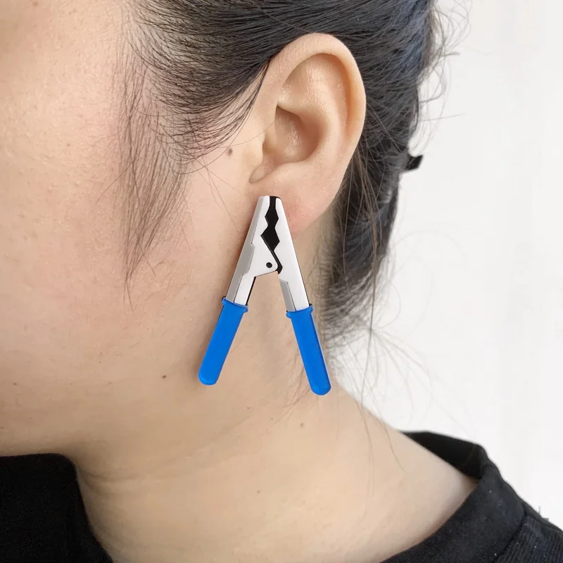 Funny Laser Cut Blue And Red Tool Nippers Acrylic Stud Earrings For Women Creative Pincers Shape Fashion Jewelry Gifts