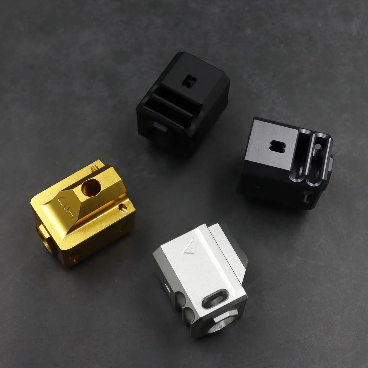 Страйкбола Версия агентства Arms 417 компенсатор CNC из 7075 алюминия и твердого покрытия анодированного, хотя не делает любой из компенсирующих, как настоящая Стальная версия, он обеспечивает последние штрихи к любому пистолету серии G и выводит уже выгнутый пистолет Агентства на следующий уровень. Если у вас есть только пистолет серии G, он дает в противном случае универсальный и довольно скучный пистолет «Агентство» лечение. Просто сломав форму слайда, 417 добавляет немного вспышки, не делая пистолет смотреть сверху.