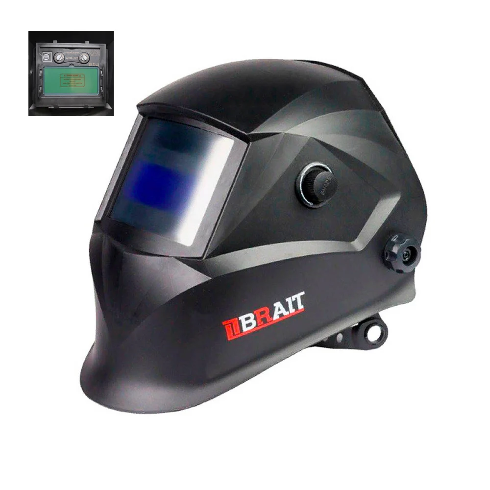 Маска сварщика хамелеон Brait ST777, 9-13 DIN c внешней регулировкой затемнения обеспечивает защиту сварщика от светового, УФ и ИК излучения при сварке в режиме MMA. Размер защитного экрана в длину 9,9 см, а в ширину 4,5 см. Удобный реечный наголовник позволяет регулировать удаленность маски от лица, высоту посадки и размер. Размер смотрового экрана 90х42.