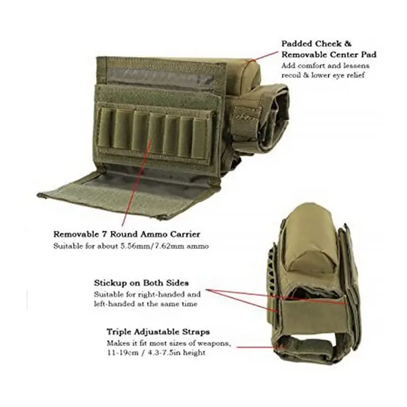 5. Высококачественный Тактический держатель: тактическая подставка для щек изготовлена из прочного нейлона 800D с нескользящим материалом, чтобы предотвратить скольжение щек.