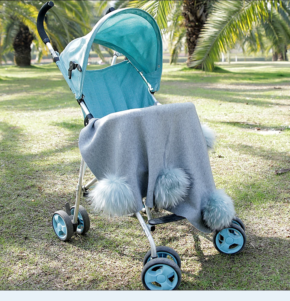Наименование товара: теплое Однотонное шерстяное одеяло для новорожденных и детей постарше, мягкое спальное одеяло для путешествий для девочек, покрывало с помпоном из натурального меха енота 15 см