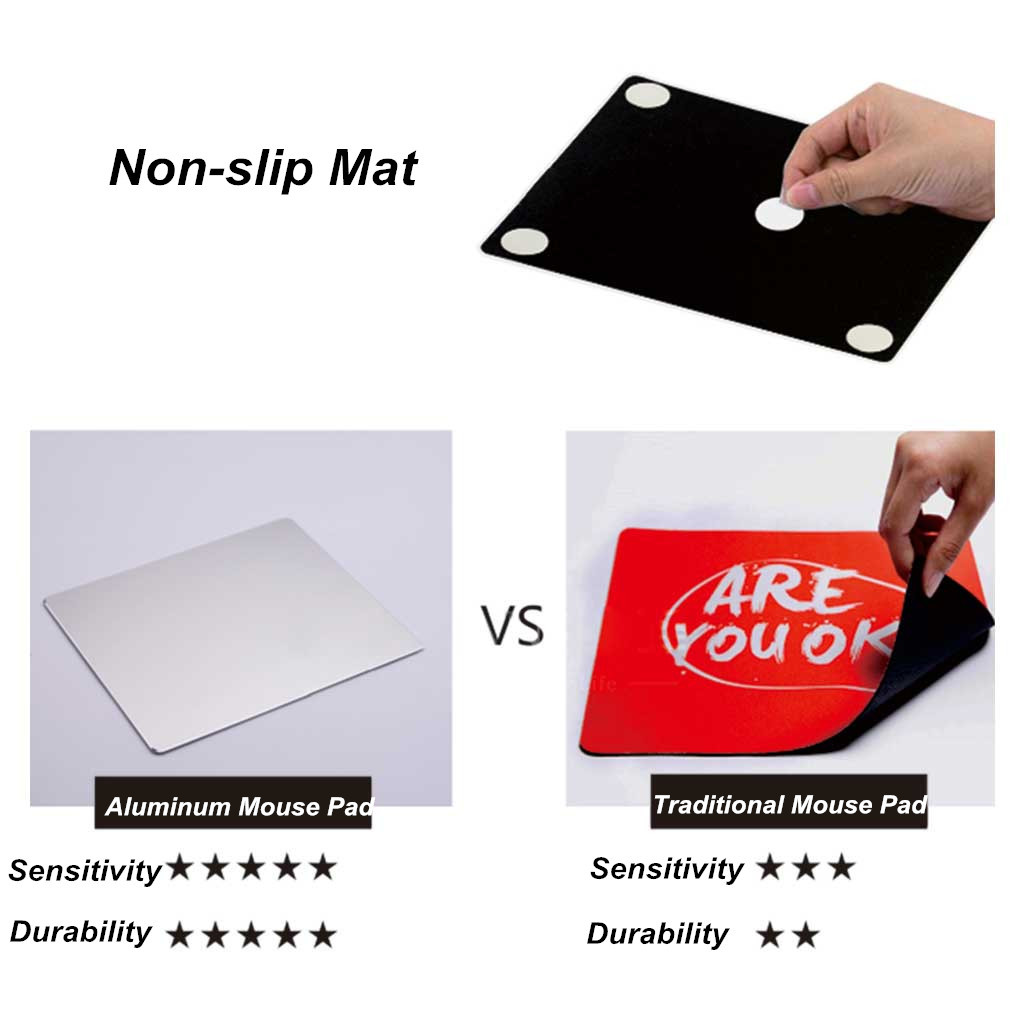 Wide Application:The Aluminum Metal PU Mouse Pad fits well with all types of mouse,such as, laser, optical, and mechanical mice. You can place your mouse on the bed, car, desk, sofa or other places, solid construction of this pad will let you smoothly move your mouse on.