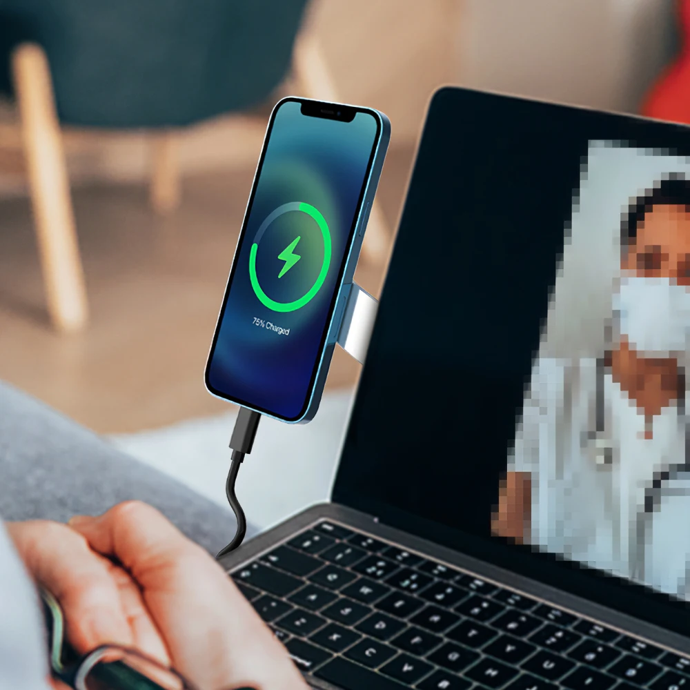 Крепление для телефона на магнитной стороне ноутбука Совместимо с iPhone 12 и совместимо с сериями iPhone 13, не требуется никаких металлических пластин при ношении магнитного чехла или чехла, И другой мобильный телефон можно использовать с металлической пластиной, очень удобно использовать.