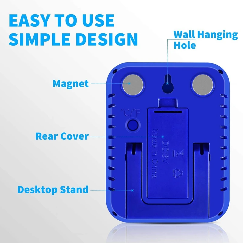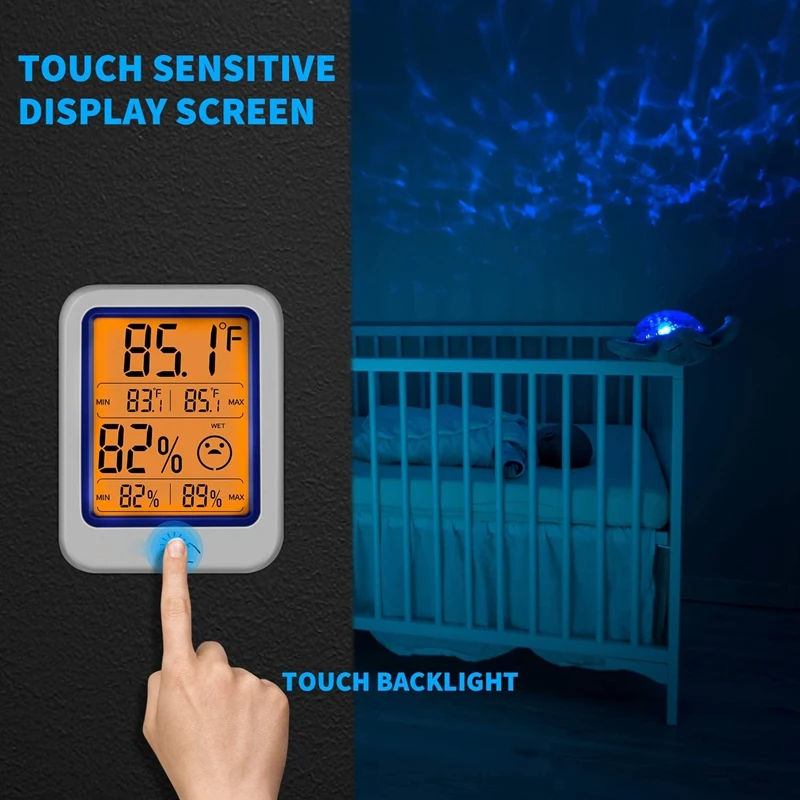 Удобный дизайн: Большой ЖК-экран, может легко и четко считывать данные. 3 уровня икон: сухой, удобный и влажный. Настольная подставка, подвесные отверстия и 2 мощных магнита обеспечивают несколько вариантов установки