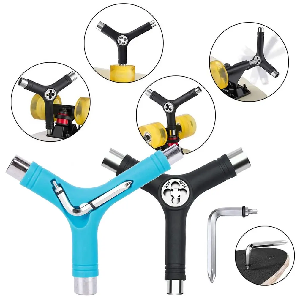 Инструмент для катания на коньках-это многофункциональный инструмент для скейтборда, который позволяет регулировать осевые гайки, монтажное оборудование и гайку kingpin на верхней части грузовика.