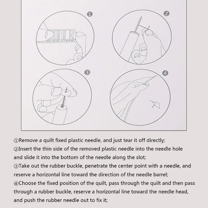 Две иглы разной длины: мы предлагаем вам две разные длины (15 мм (тонкое одеяло 2-3 кг) / 25 мм (плотное одеяло 5-12 кг) Мягкие силиконовые иглы. Эти силиконовые иглы могут удовлетворить потребности разных сезонов и разной толщины одеял.