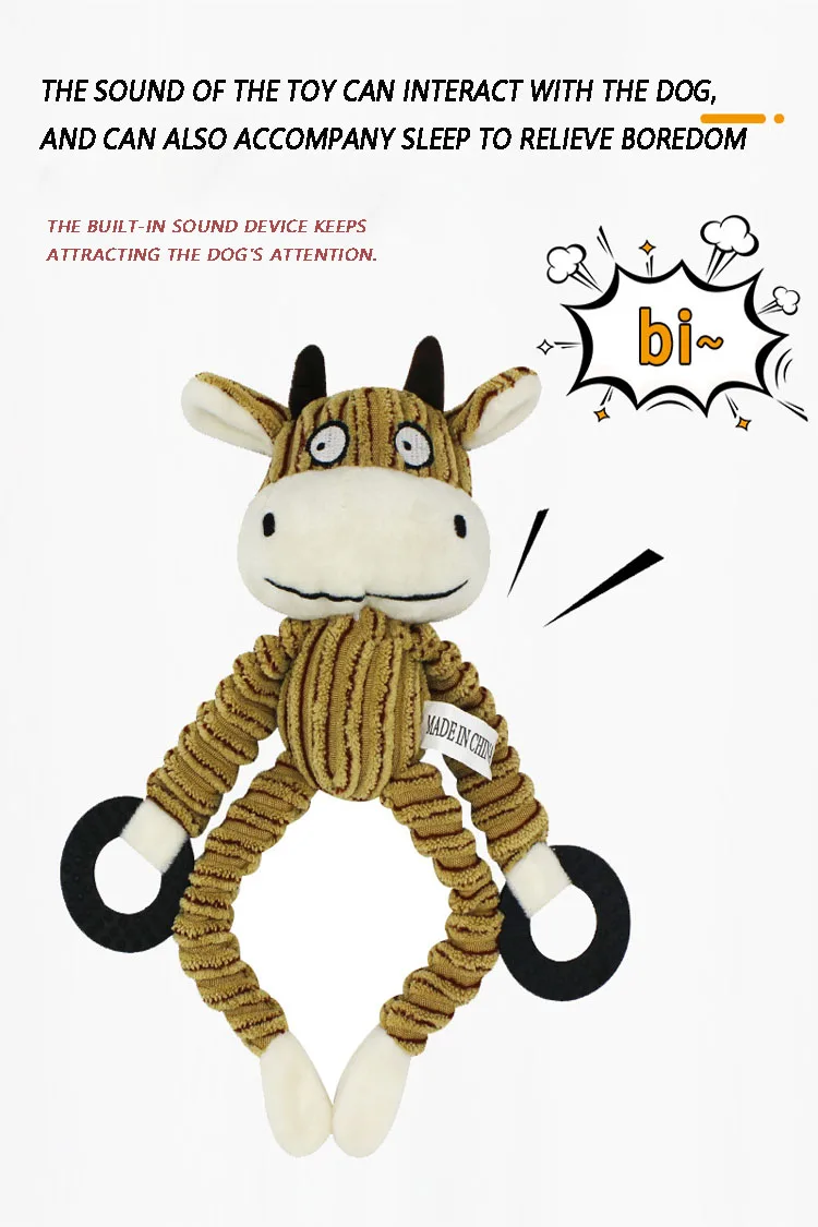 Забавная мультяшная звучащая игрушка для щенка, трехцветное резиновое кольцо, Вельветовая плюшевая обезьянка, игрушечный медведь, Интерактивная кукла для питомца