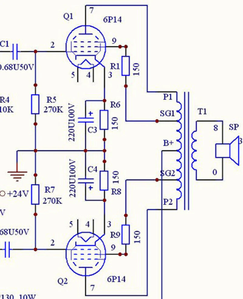Инструкции по подключению триода:Подключите 6P14 9-контактный 150Ω резистор SG к 6P14 pin 7.