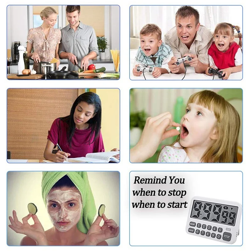 Подсчитывайте таймер вверх/вниз-этот цифровой кухонный таймер является последней обновленной версией таймера 3,0! Это может быть как таймер подсчета, так и таймер подсчета цикла, максимум до 9 часов, 99 минут и 99 секунд. Идеально подходит для приготовления пищи на кухне и выпечки, душа, упражнений, тренажерного зала, барбекю, парикмахерской, обучения в классе, детских занятий и встреч. Большой ЖК-дисплей с большими цифрами-Большой ЖК-экран для отображения цифр таймера.