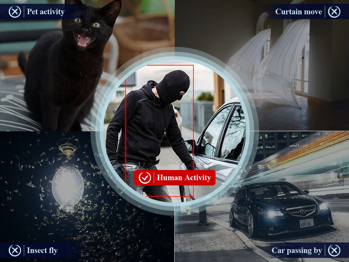 Только когда кто-то пройдет зону сигнализации, камера отправит сигнал тревоги, повысит точность сигнала тревоги.