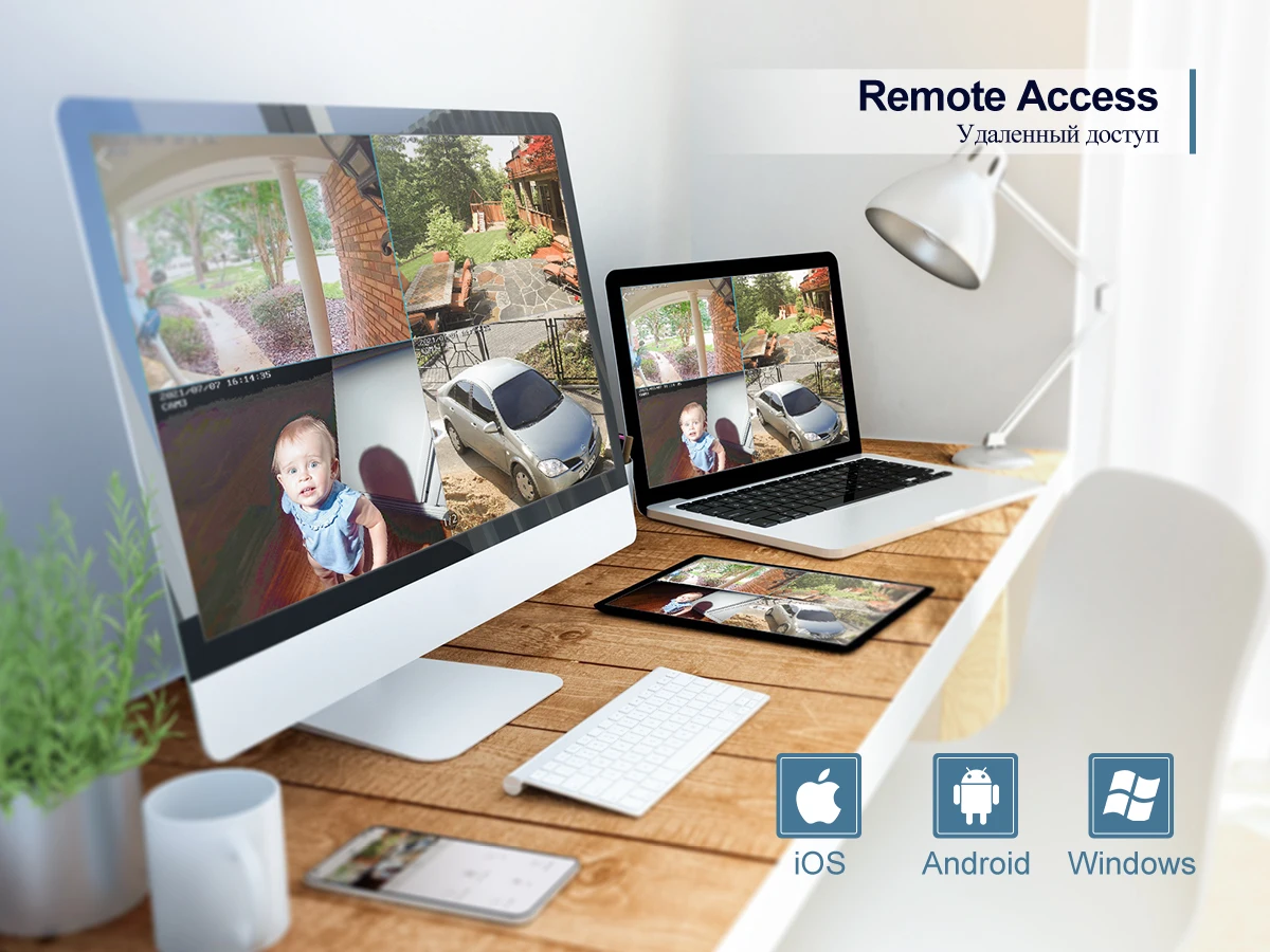 На основе технологии P2P (peer to peer), поддержка установки plug-and-play. Доступ к ip-камере через веб-интерфейс через Интернет-проводник, также поставляется с бесплатным приложением для смартфонов (Android и iPhone) для удаленного просмотра из любого места.