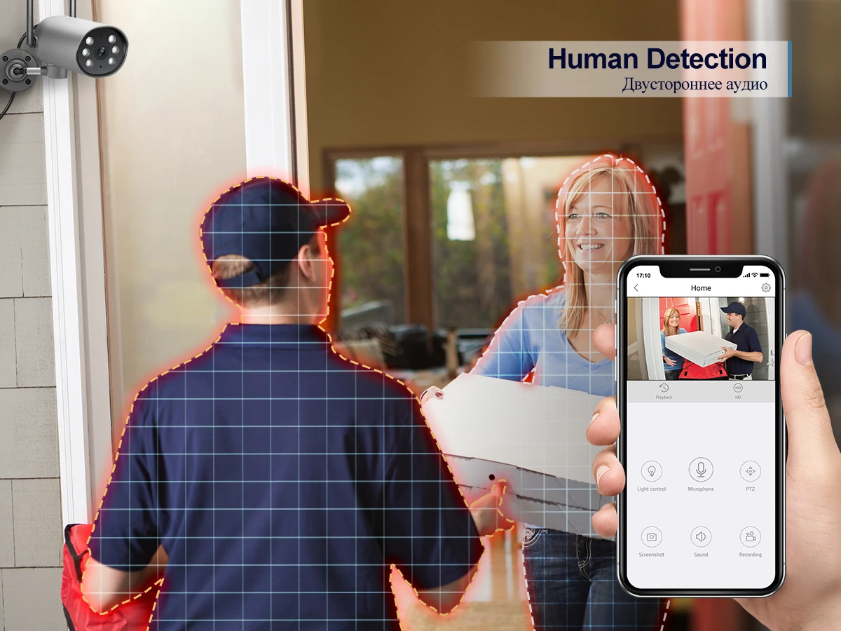 С технологией обнаружения движения Humanoid, он будет отправлен предупреждающие сообщения, когда нажал сигнал тревоги в местное приложение и просмотреть что-то на видео при воспроизведении