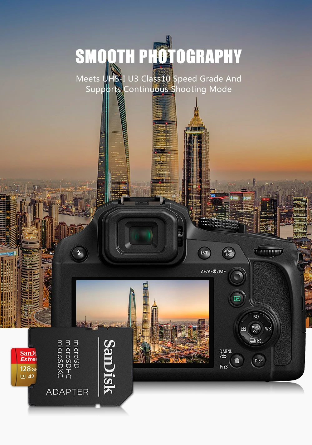 Идеально подходит для записи событий без пропуска кадров. Карта SanDisk Extreme microSD UHS-I позволяет записывать непрерывное видео 4K UHD и Full HD с рейтингами U3 и V30.