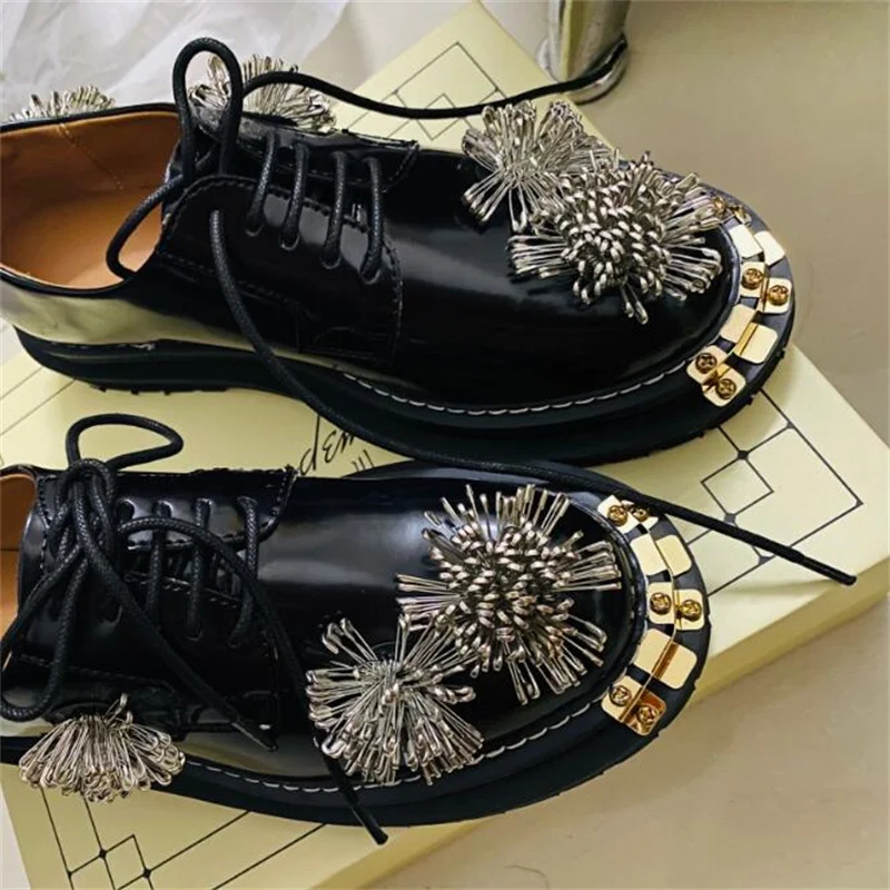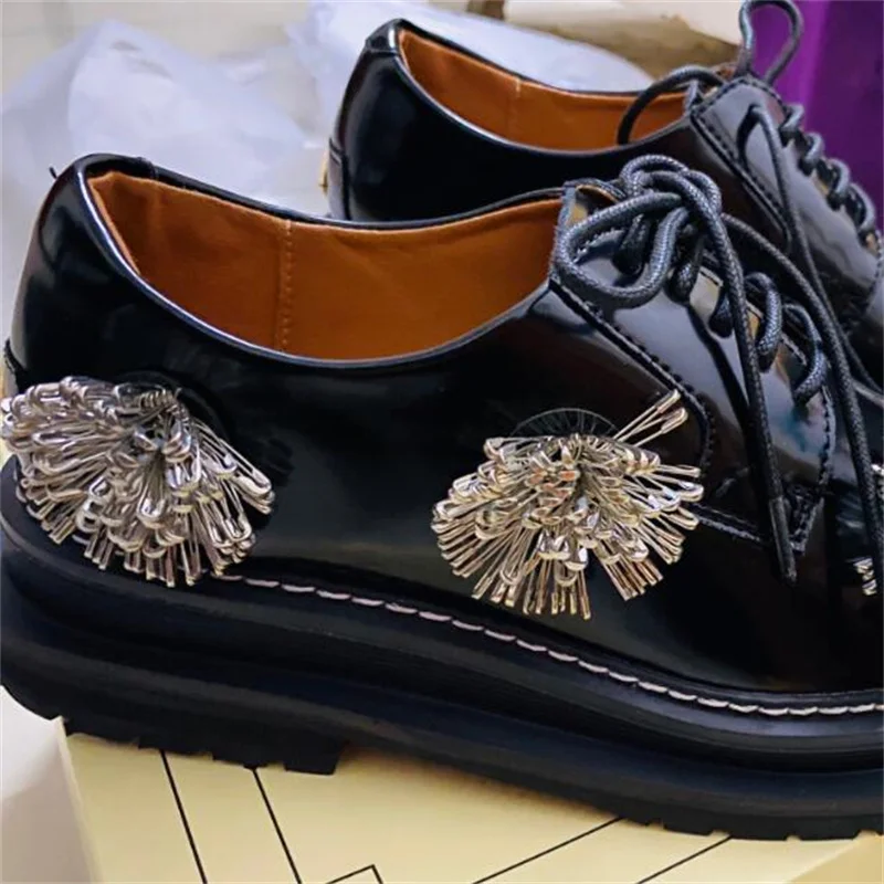 2022 женская обувь; Модные женские лоферы Mary jane с круглым носком и металлическим штифтом; Туфли-оксфорды; Повседневная женская обувь на каблуке