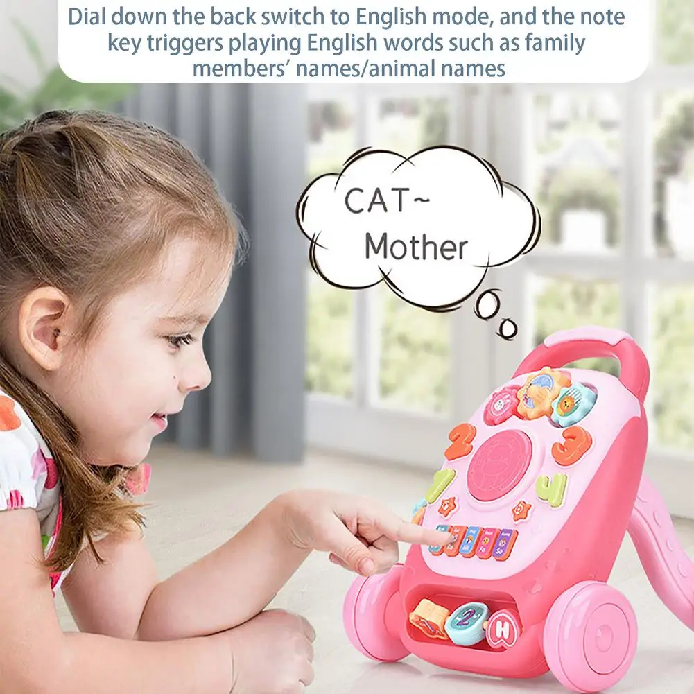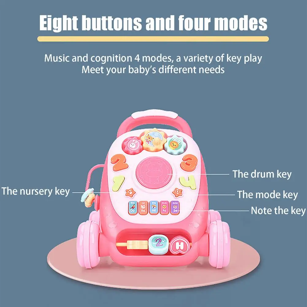 Мини-ходунки для малышей, Многофункциональная подставка для сидения, четырехколесная тележка для детей, обучающая прогулочная игра, стол, музыкальные игрушки, тележка