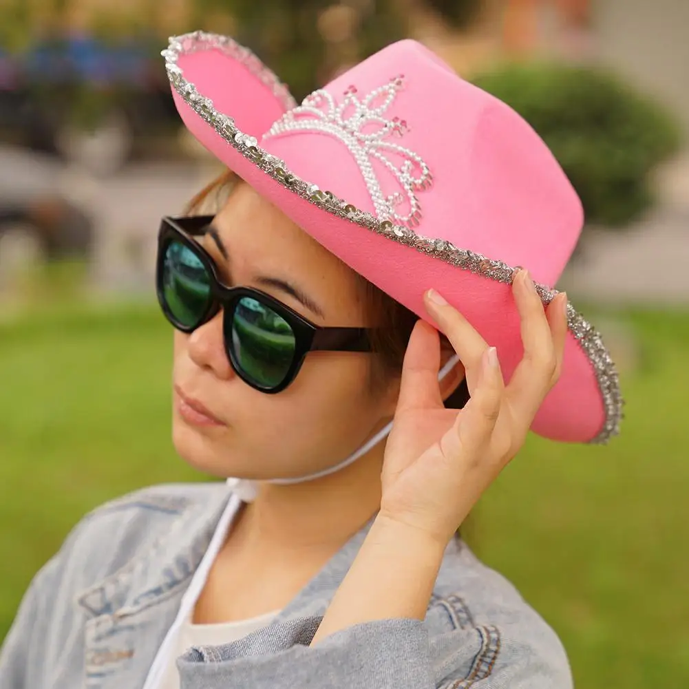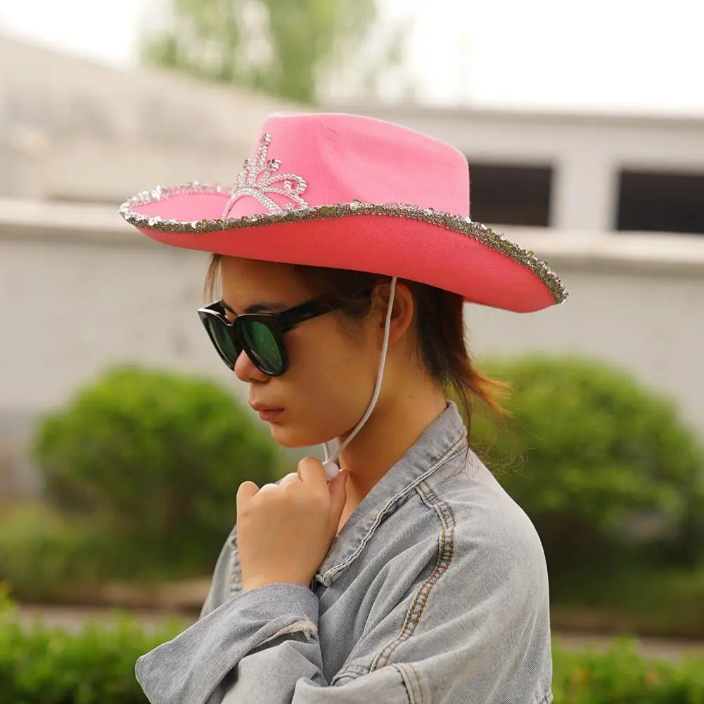 Ковбойская шляпа в западном стиле для женщин и девочек, розовая шляпа в ковбойском стиле, праздничный костюм, вечерние шляпы