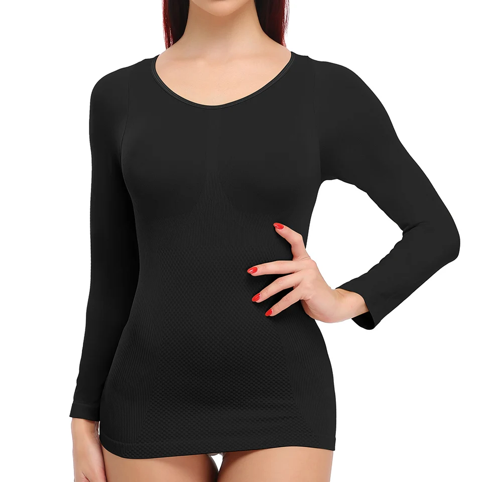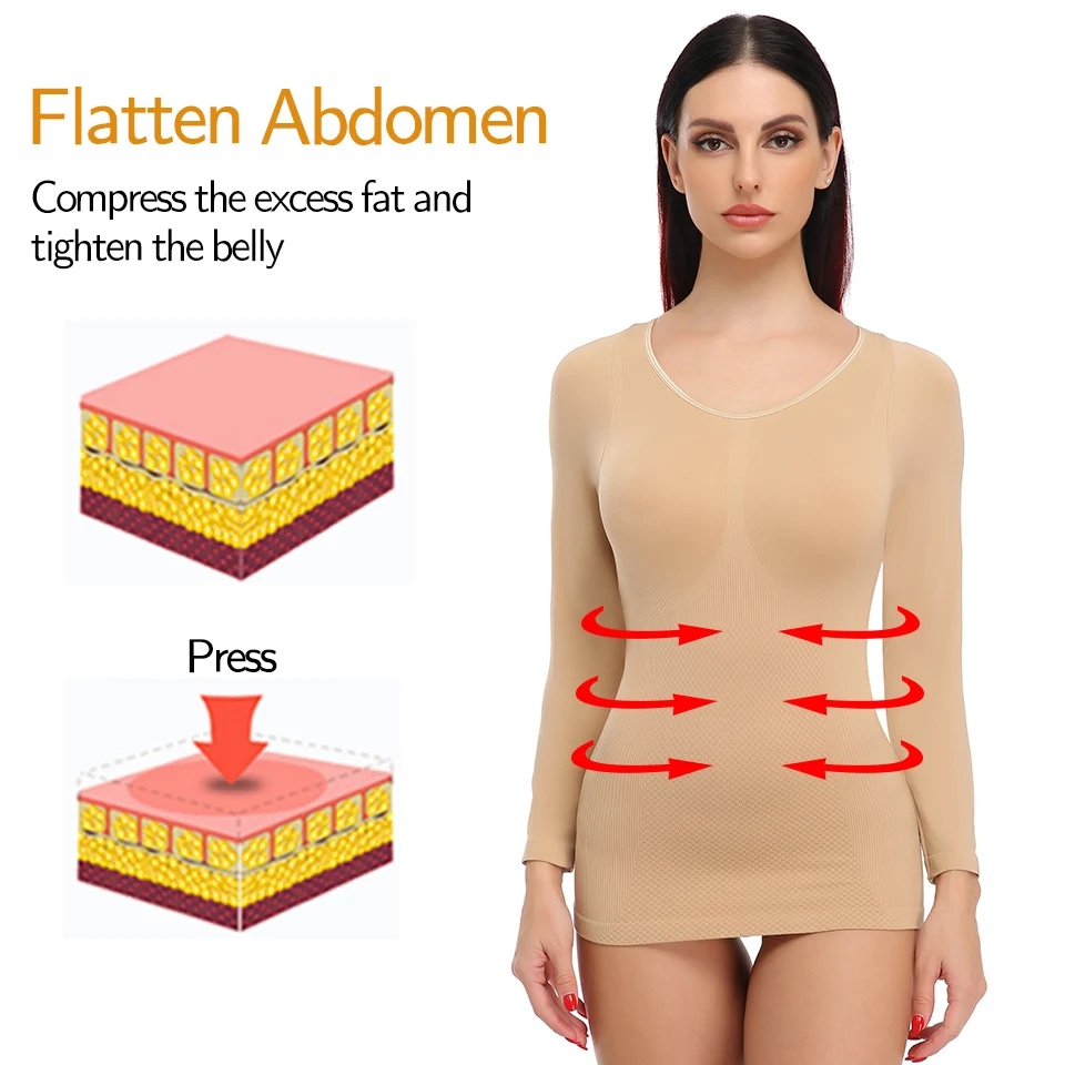 ·❤Контроль животика термический Топ❤-Эта рубашка для похудения для зимнего ношения со специальной высокой компрессией средней длины для контроля животика и снижения талии прочно, давая вам более гладкие и стройные естественные изгибы.