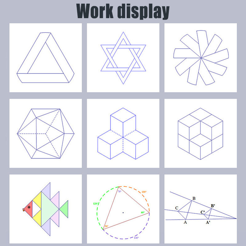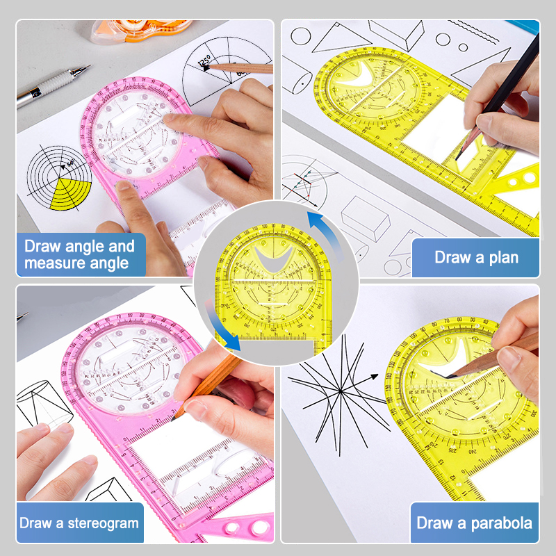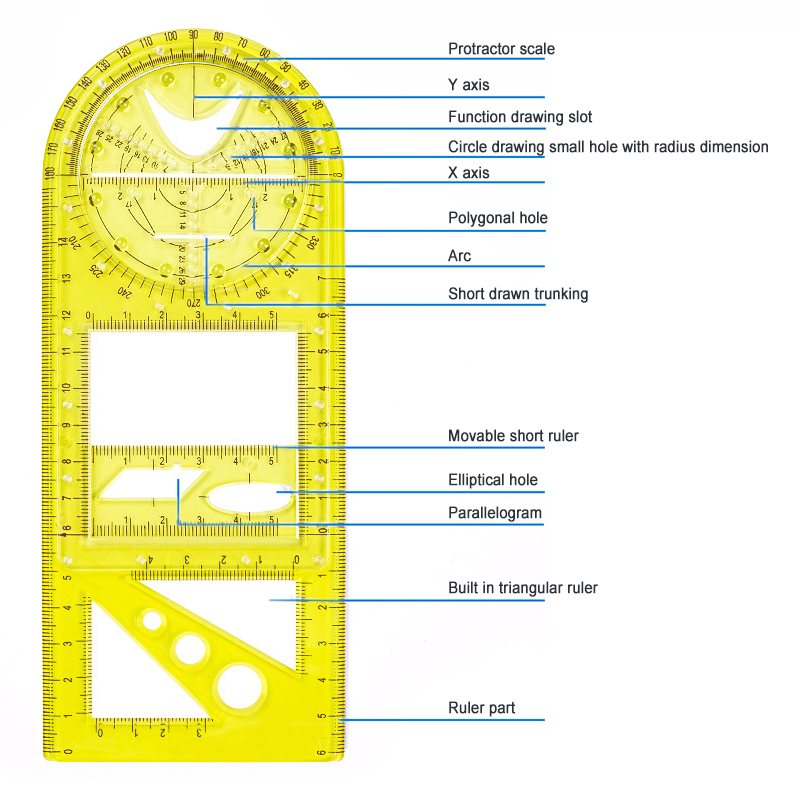 4. Дизайн: геометрические фигуры различных форм помещаются на линейке, которая очень удобна для переноски, может удовлетворить ваши различные потребности в ежедневном использовании и удобна для измерения.