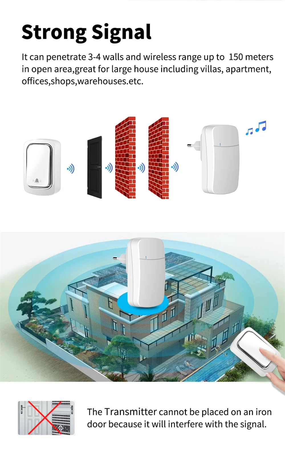 Он может проникать в 3-4 стены и беспроводной диапазон до 150 метров на открытой местности, отлично подходит для больших домов, включая willas, квартиры, офисы, магазины, склады и т. д.