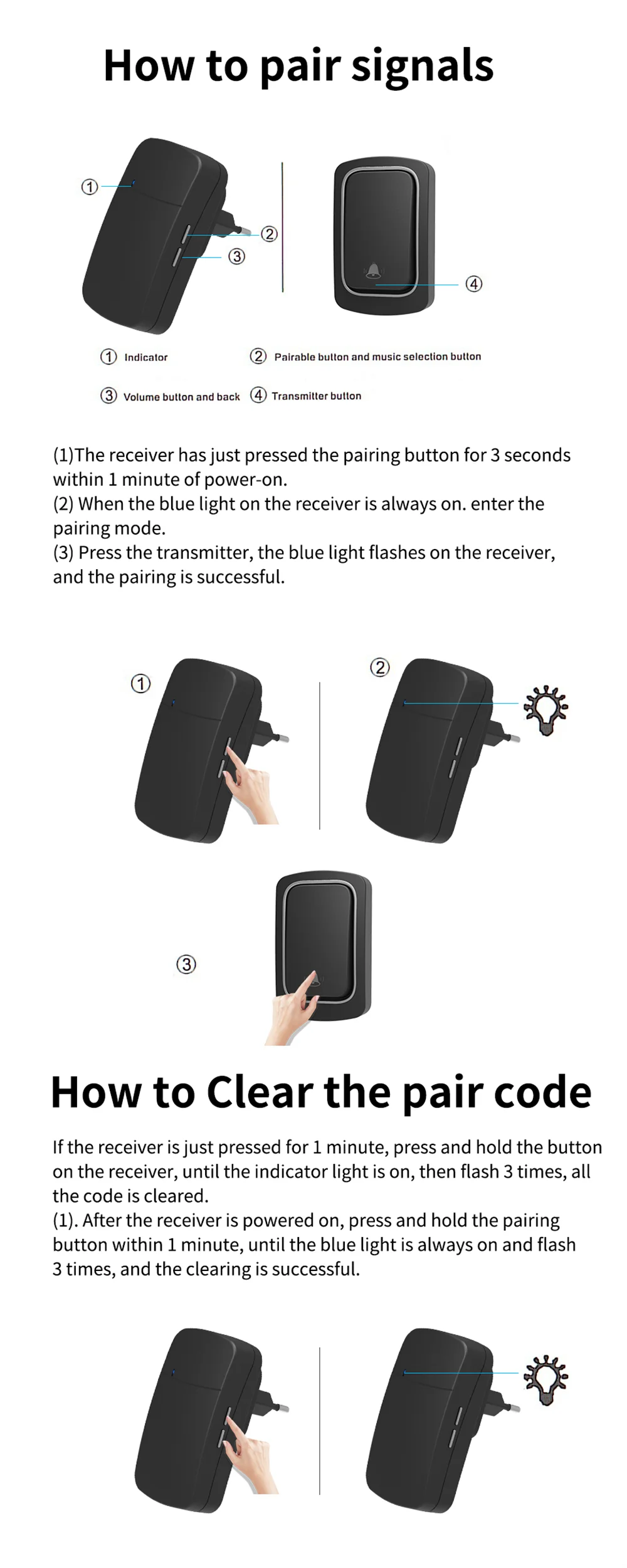 Когда взрослые, младенцы и беременные женщины спят в одиночестве, нажмите на передатчик и звонок.