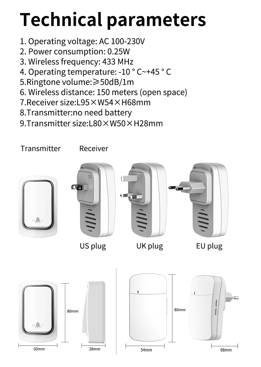 Размер передатчика: l80xw50xh28мм