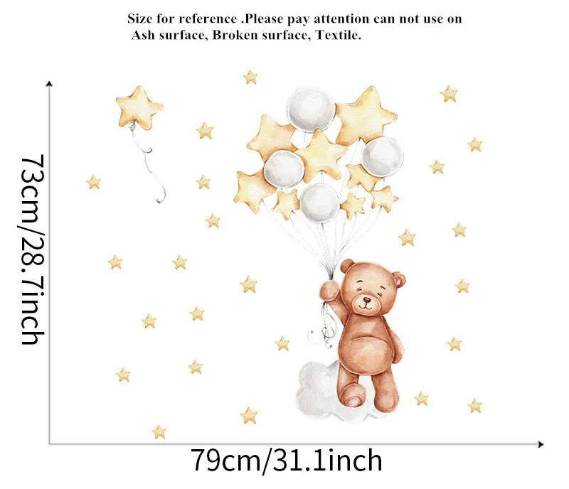 Наклейки на стену с изображением медведя, воздушных шаров, звезд для детской комнаты, украшения детской комнаты, гостиной, спальни, Наклейки на стены, детские наклейки