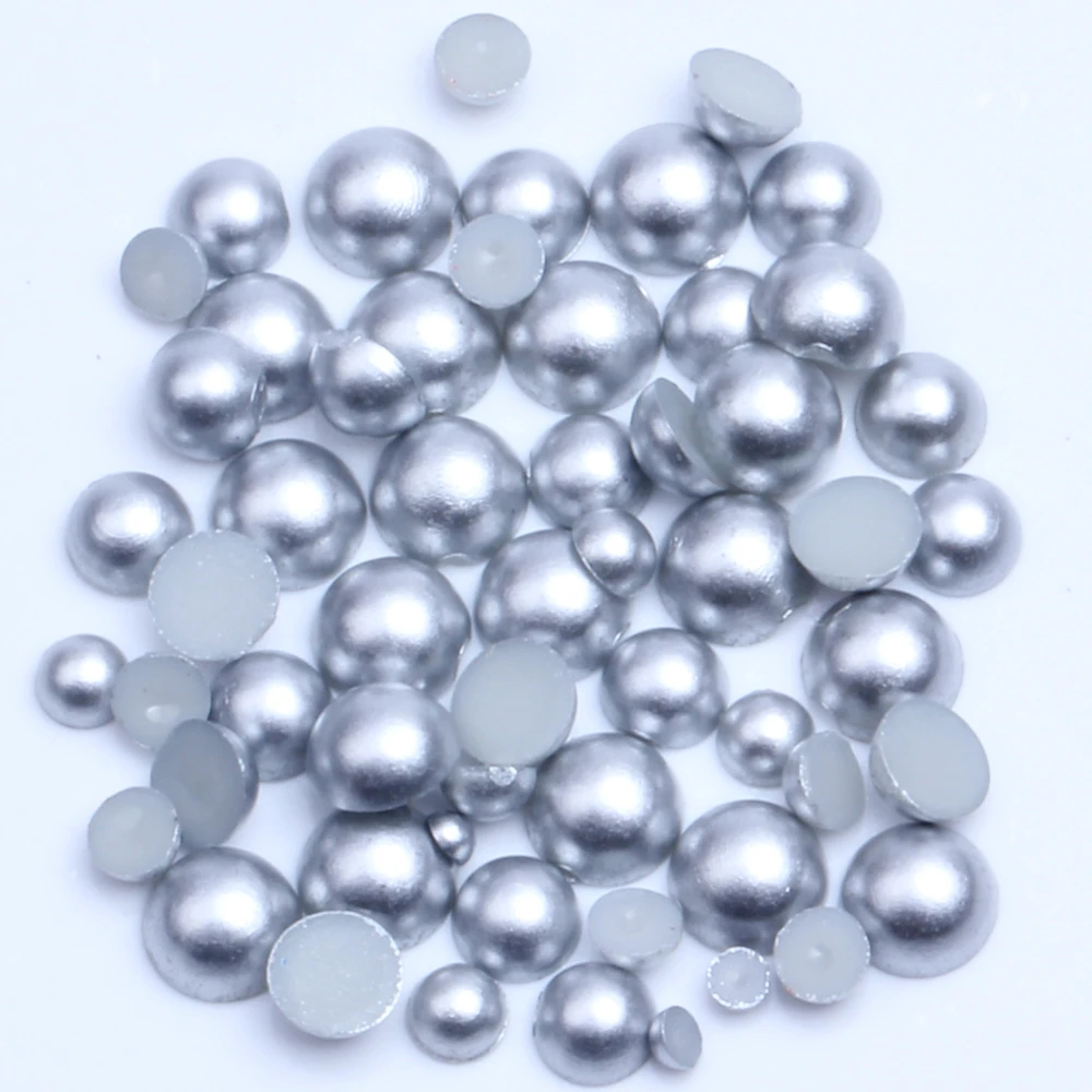 Матовые Серебристые полукруглые жемчужины 2 мм-12 мм круглые плоские с одной стороны приклеенные полимерные бусины аппликации для свадебного платья аксессуары