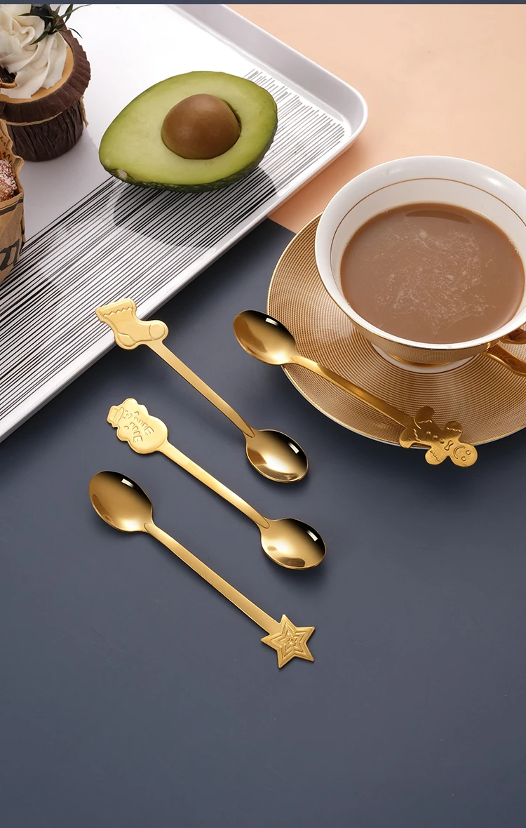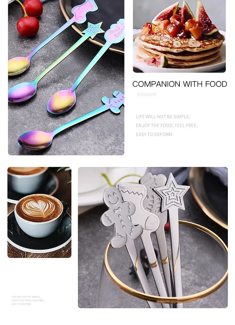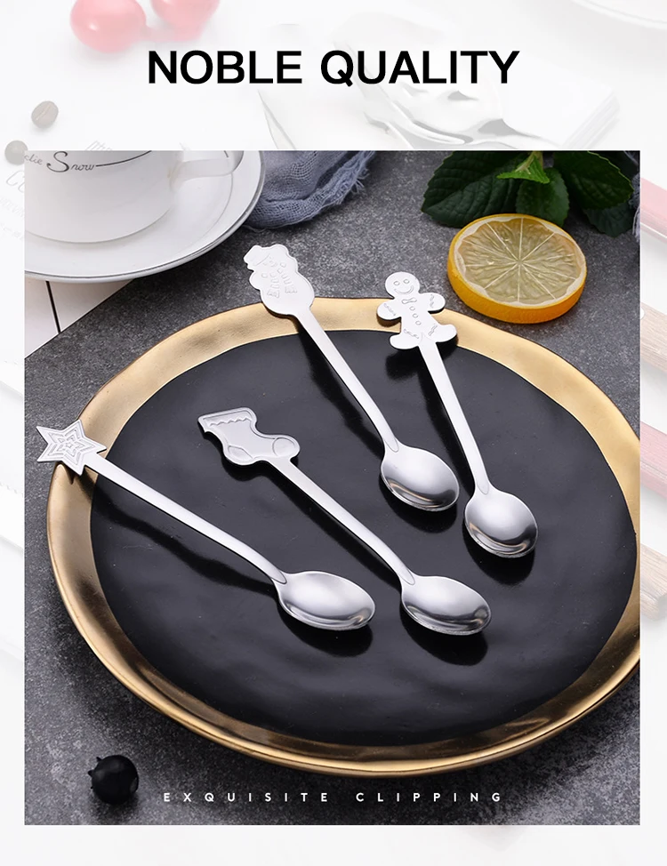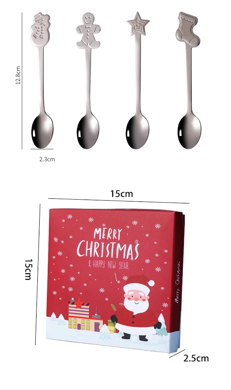 Креативная Рождественская круглая ложка из нержавеющей стали, столовая посуда, десерт, мороженое, кофейная ложка, набор столовых приборов с роскошной подарочной коробкой