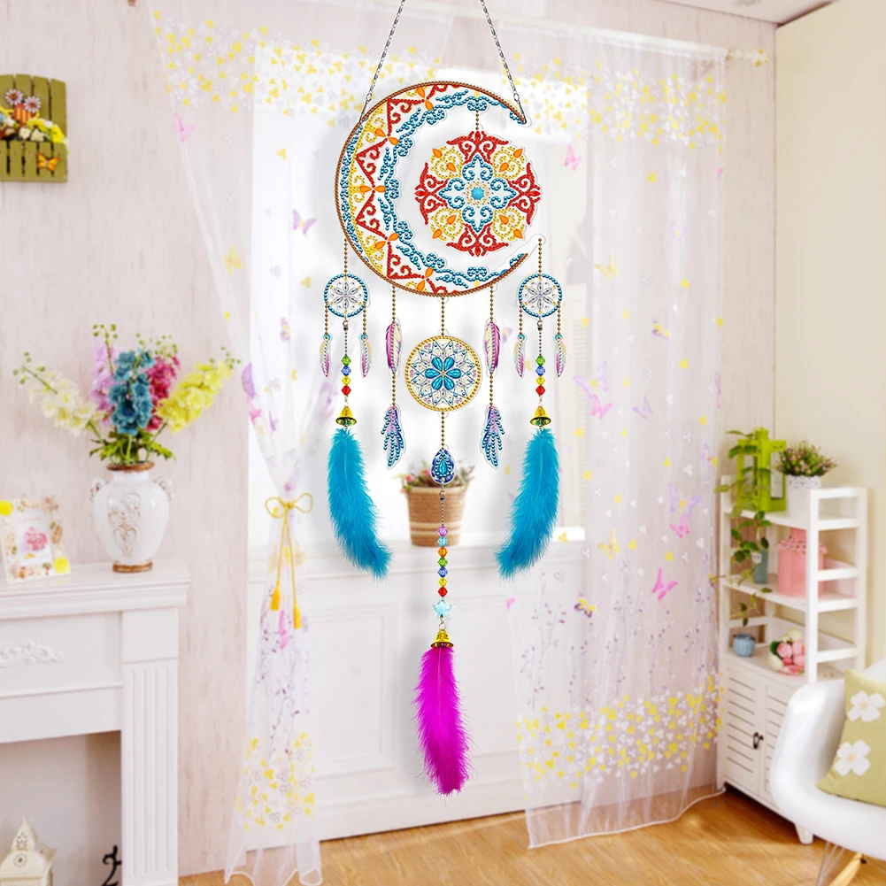 DIY Алмазная картина Ловец снов Набор колокольчиков мозаика перо бисера цепь висит для дома садовые украшения