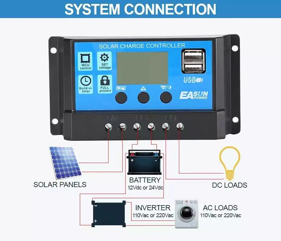 3. Полностью 4-ступенчатая ШИМ Контроллер заряда.