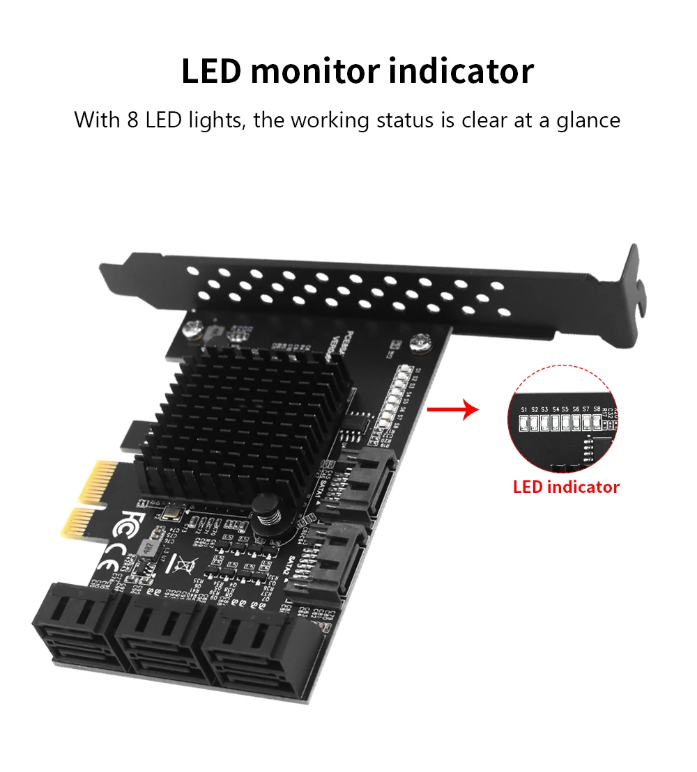 Оснащен 8 интерфейсами SATA3.0, высокой скоростью передачи данных, поддержкой жесткого диска/оптического диска/твердотельного накопителя SSD с интерфейсом SATA
