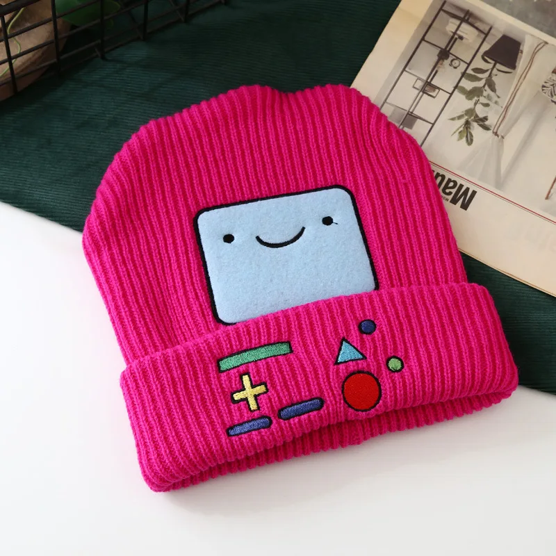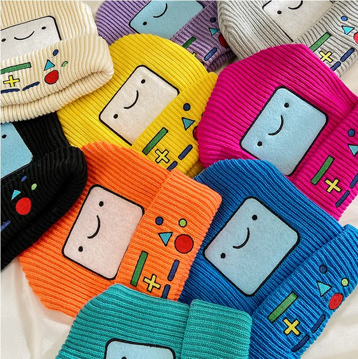 Осенне-зимняя вязаная шапка, детская игровая машинка, теплая шерстяная шапка с рисунком из мультфильма, шапка с улыбающимся лицом, шапочки
