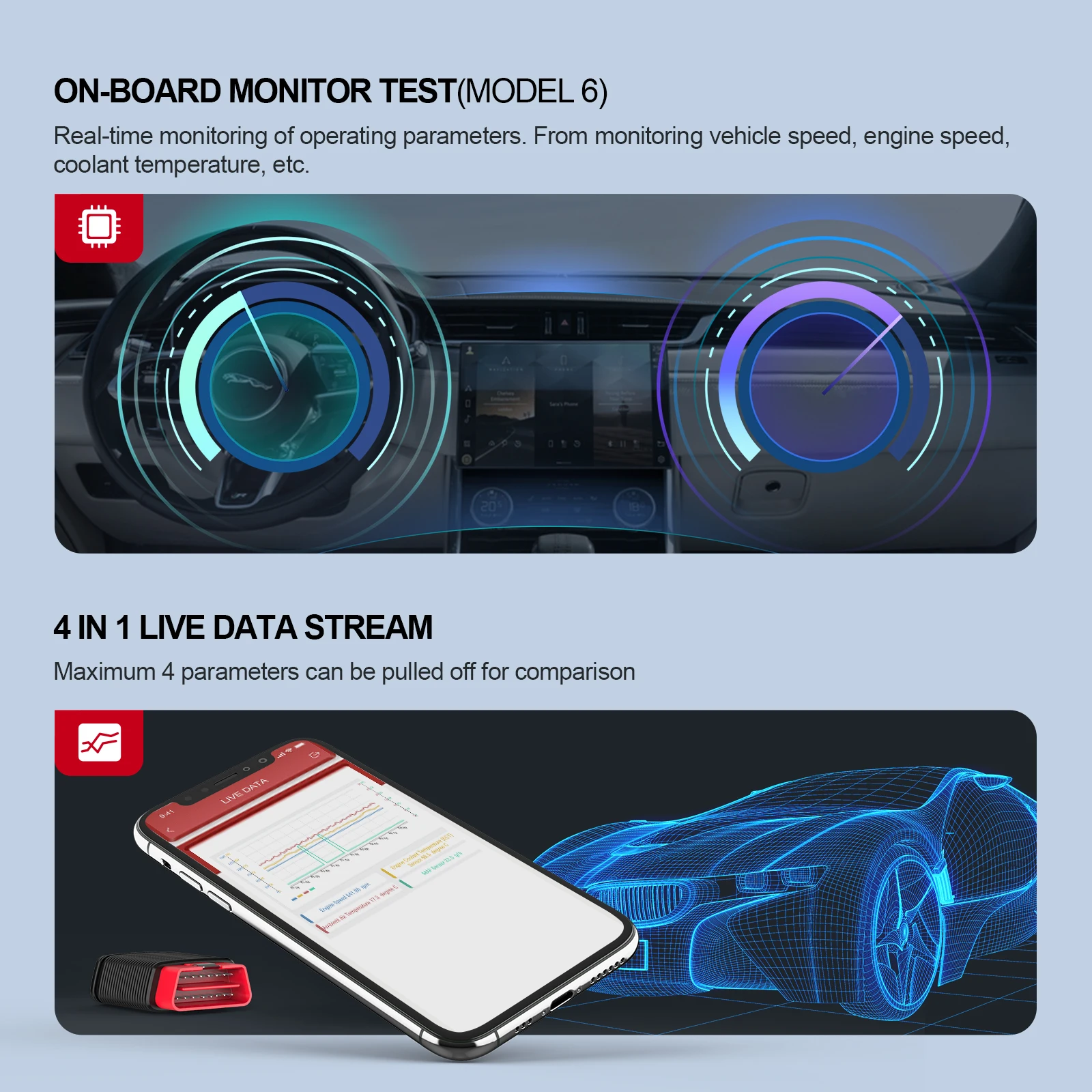 Этот универсальный сканер OBD2 может использоваться для чтения информации о ЭБУ всех доступных систем для облегчения диагностики транспортного средства.