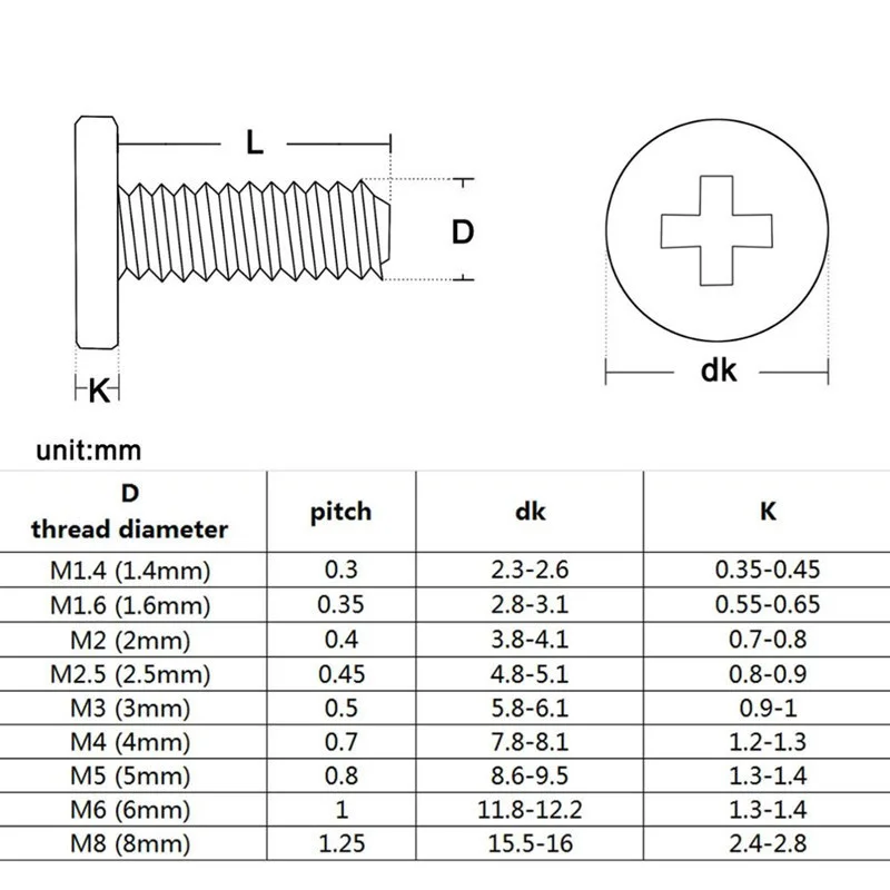 1,4 мм (M1.4) /1,6 мм (M1.6) / 2 мм (M2) /2,5 мм (M2.5)